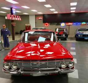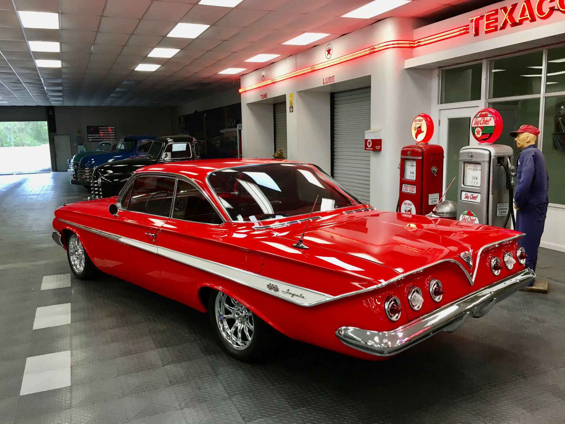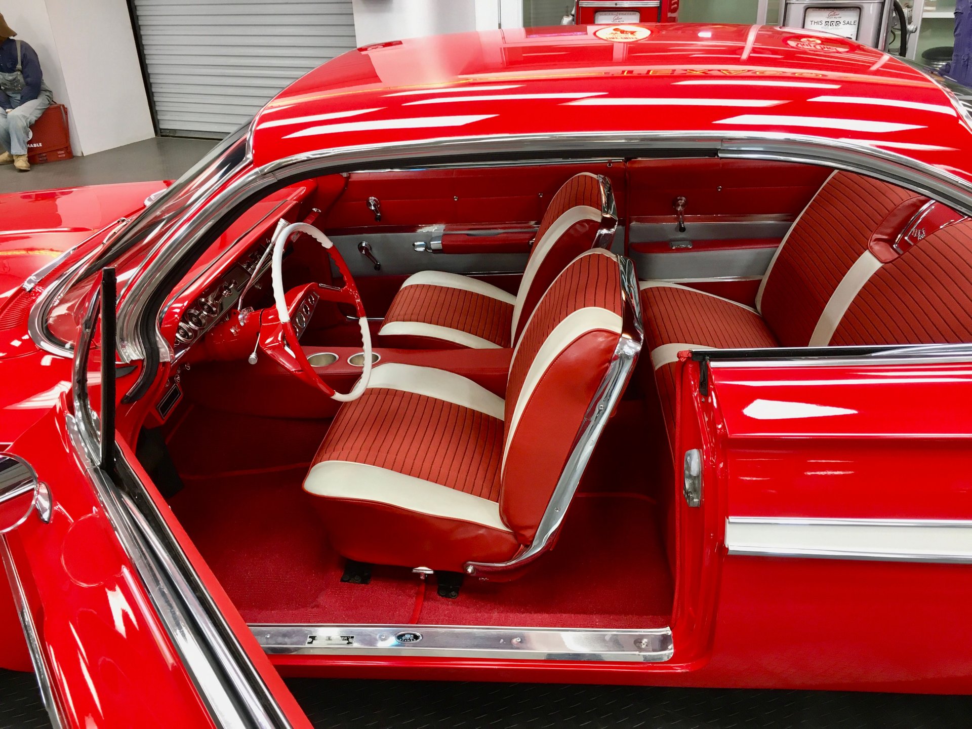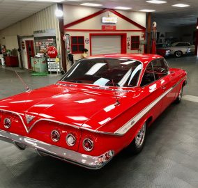 1961 Chevrolet Impala with a 5.7 LS V8, 4L60E transmission, and CPP power steering. Features air conditioning, new interior, 18" chrome wheels, and show-quality red paint. Runs and drives like a late-model car, ideal for both shows and daily drives