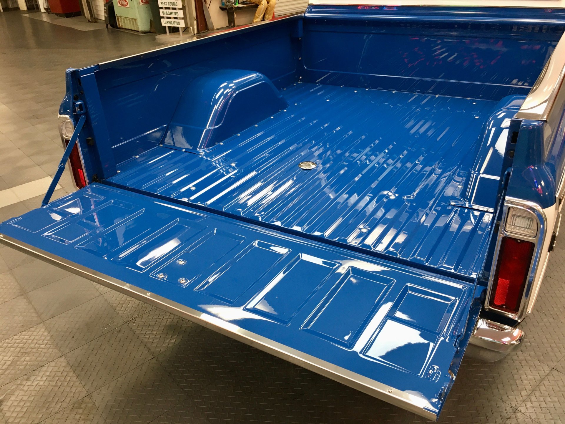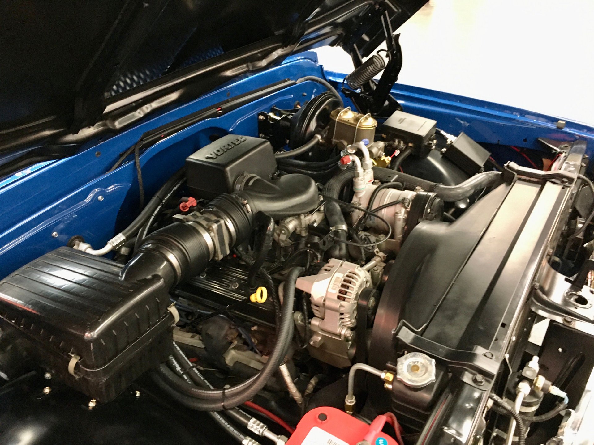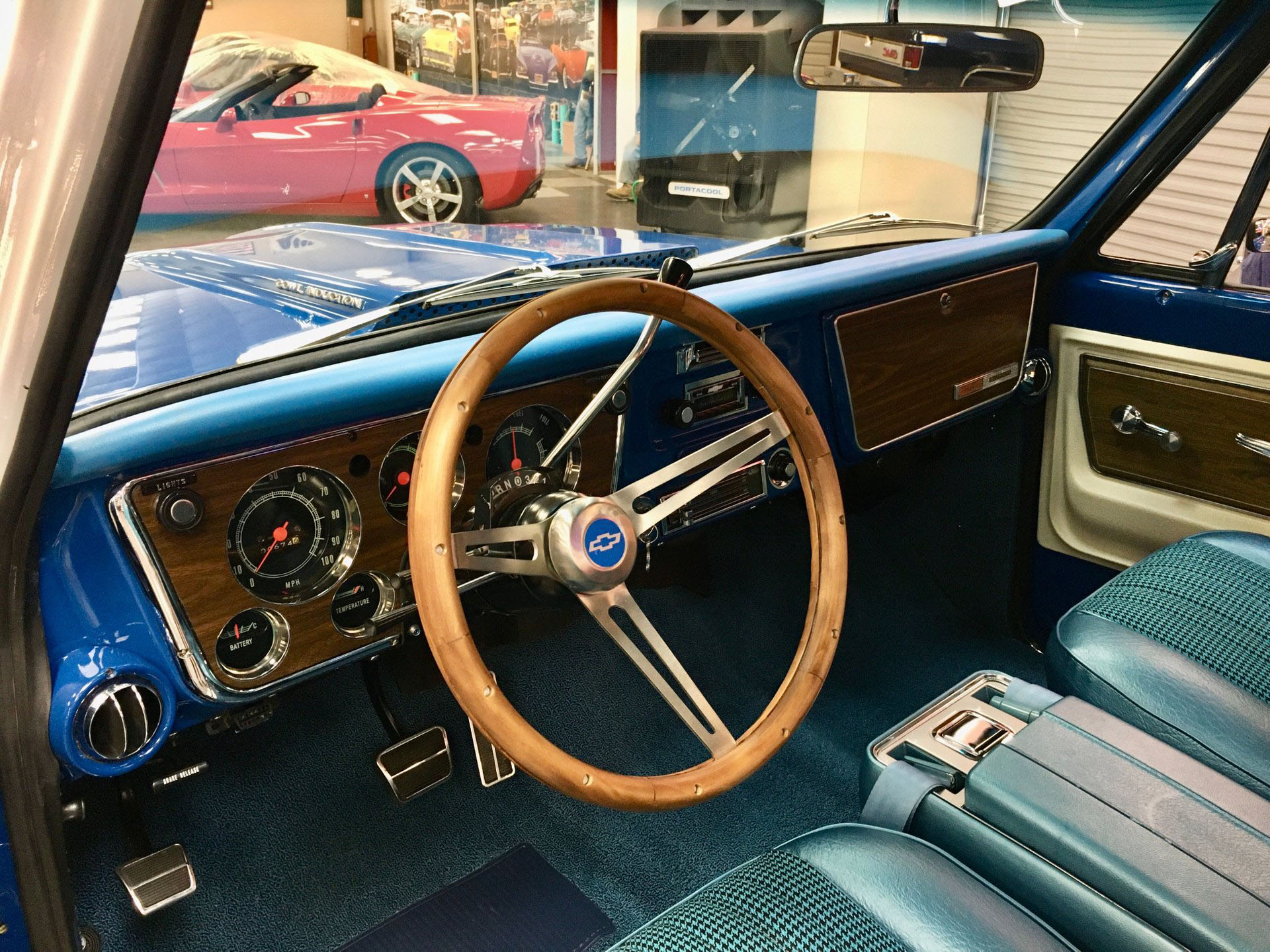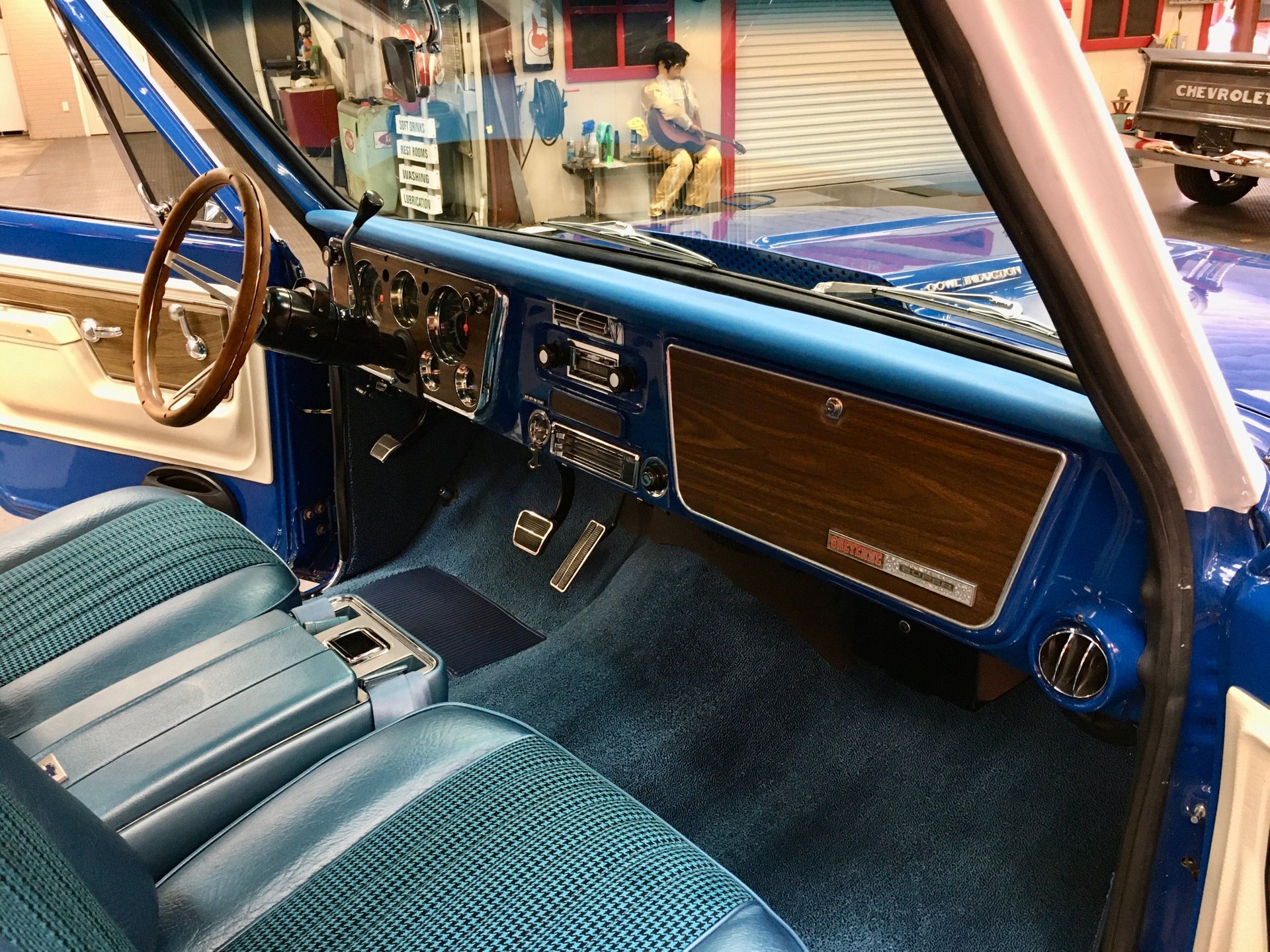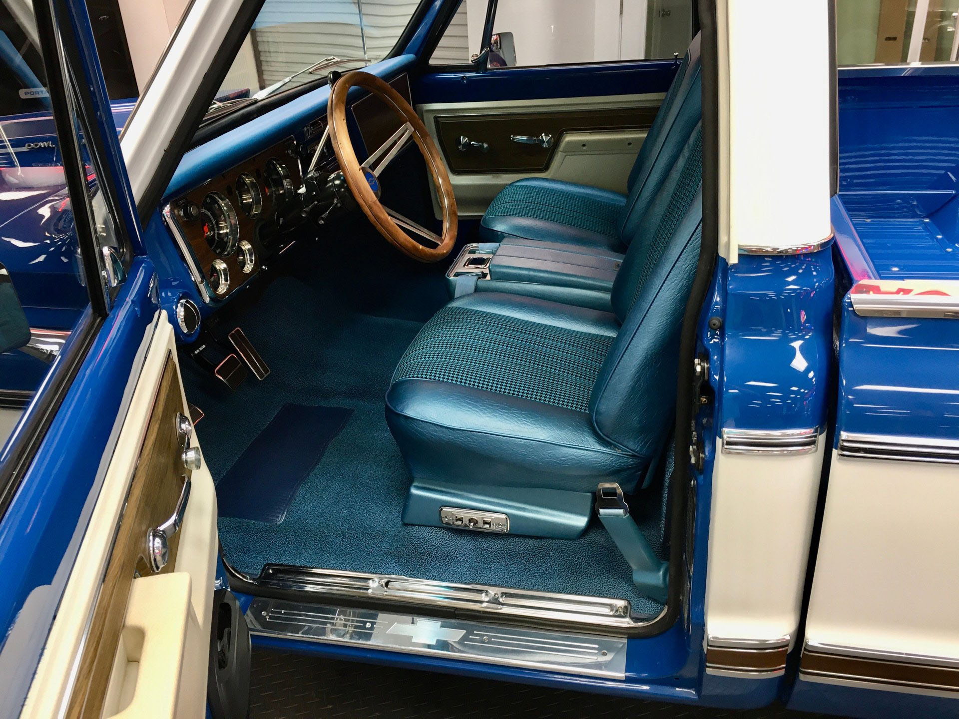 5.7L Vortec V8, 4L60E transmission, and modern amenities like air conditioning and updated wiring. Its show-quality blue and white paint, combined with a freshly reupholstered interior, makes this truck both stylish and dependable.