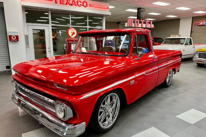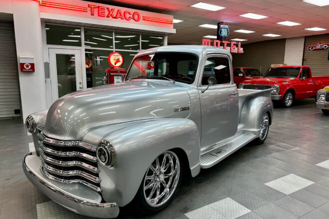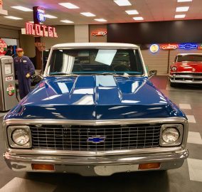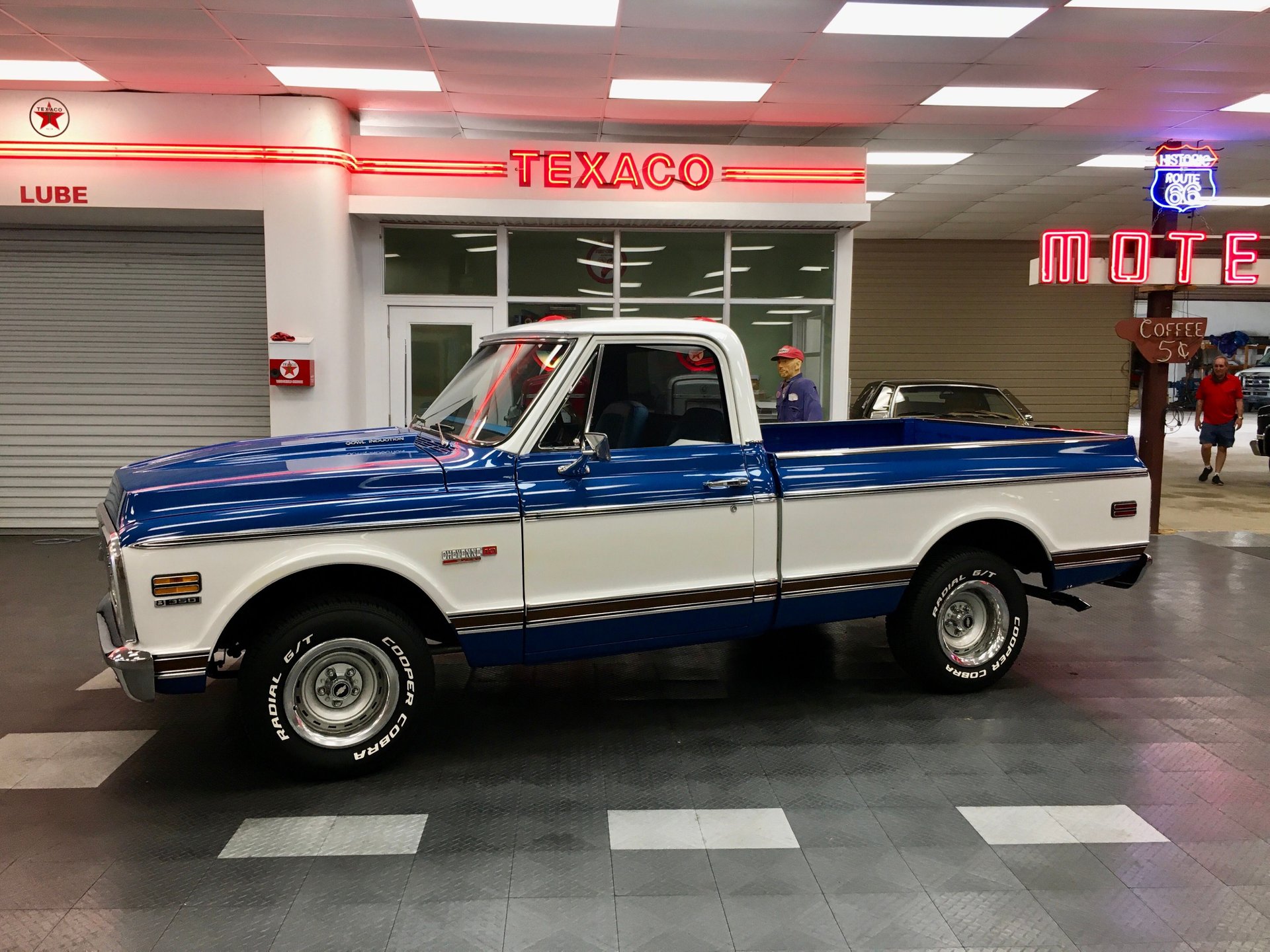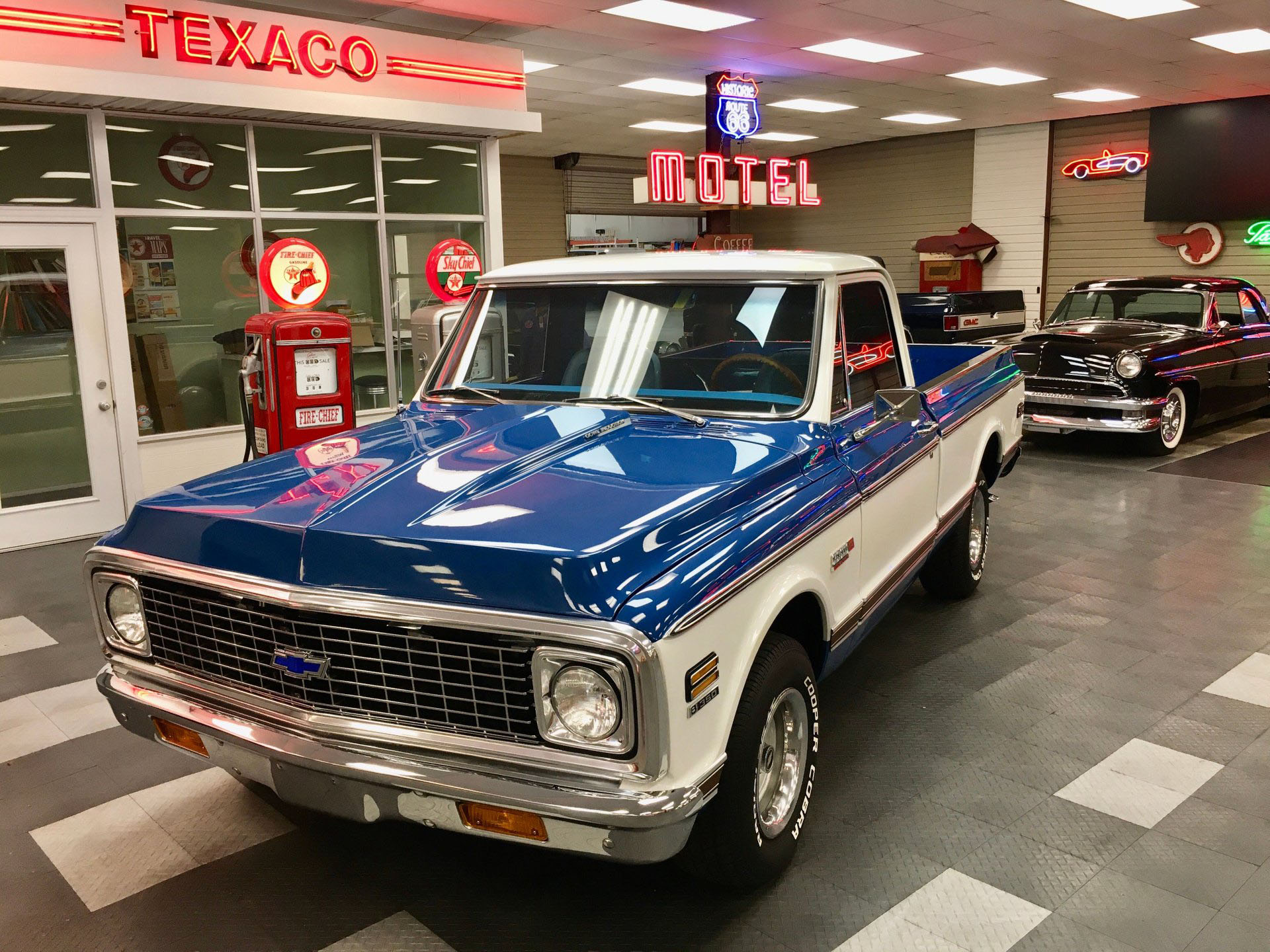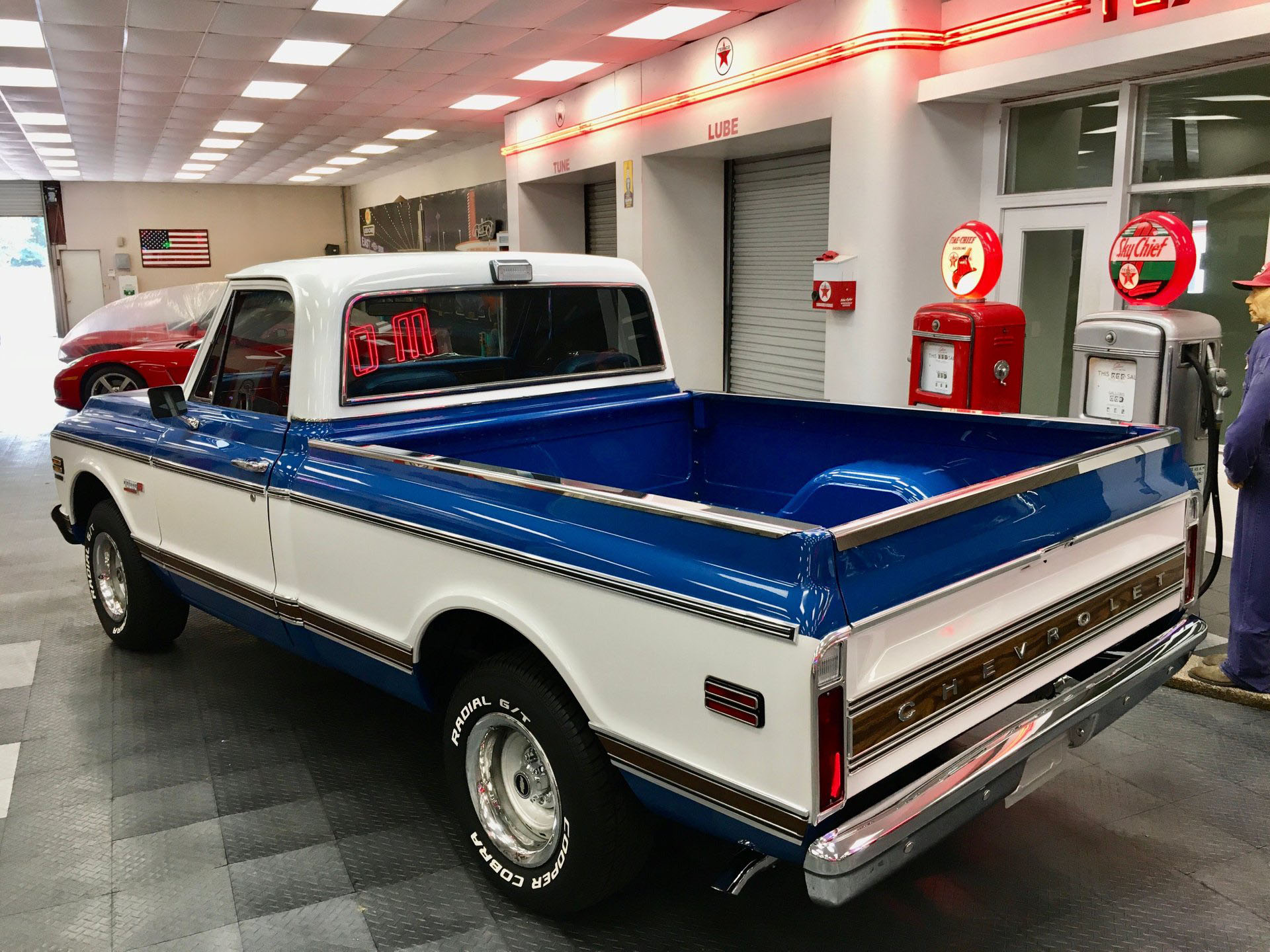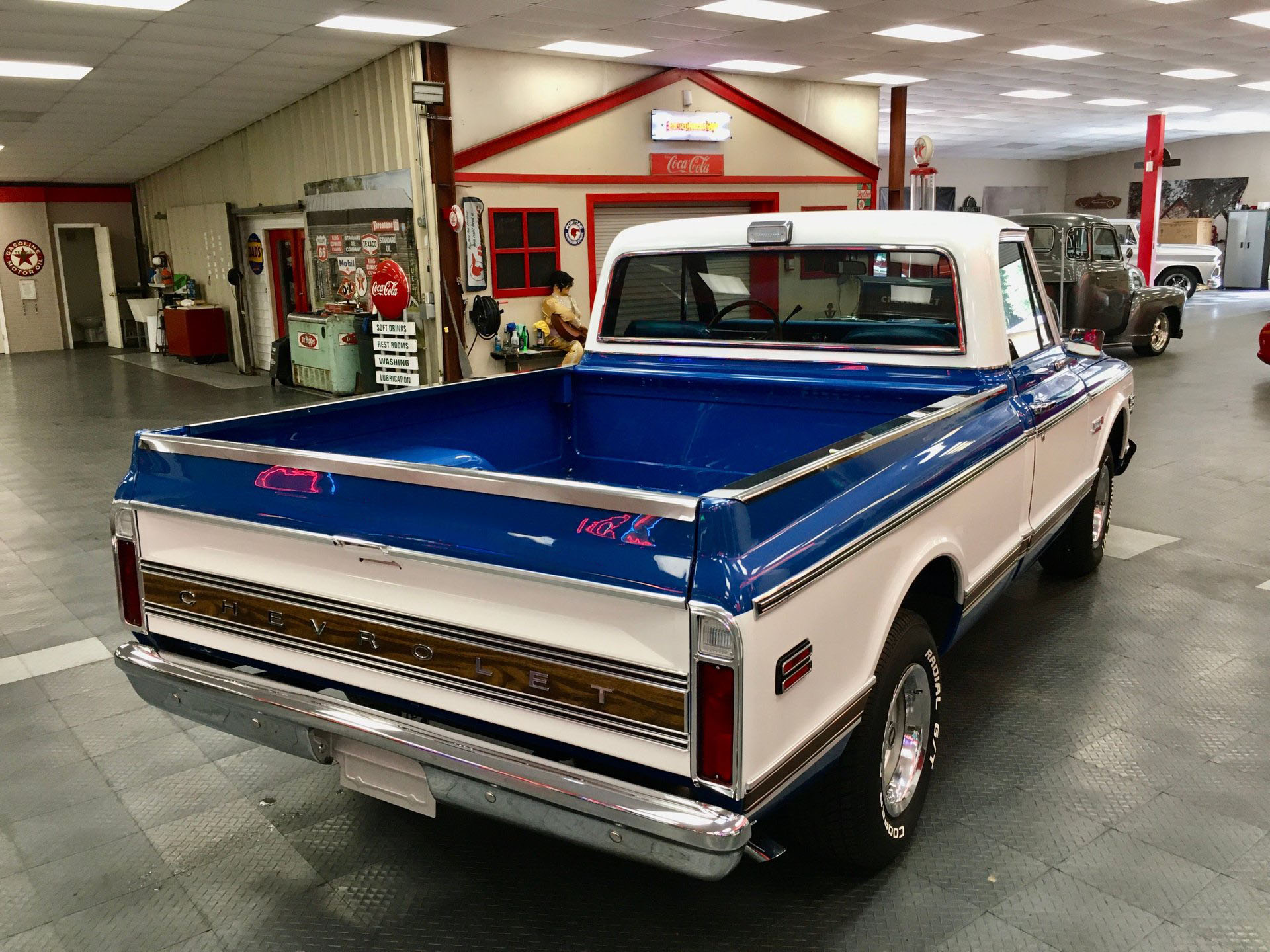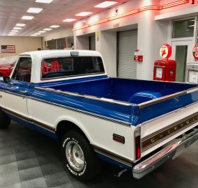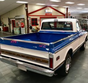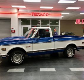 5.7L Vortec V8, 4L60E transmission, and modern amenities like air conditioning and updated wiring. Its show-quality blue and white paint, combined with a freshly reupholstered interior, makes this truck both stylish and dependable.